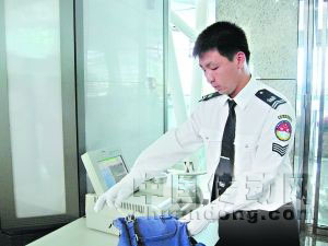 據了解,正式啟動二次安檢后,在進入安檢門之前,旅客將被分為小組進行批量采樣檢查,小組人員實行同進同出,每個小組不超過10名旅客。據工作人員介紹說,這是借鑒北京奧運成功經驗而采用的批量采樣檢查,由工作人員用一塊形狀和顏色都和創可貼十分相近的纖維紙,在每一位旅客的旅行包表面一擦,然后迅速將“創可貼”插入一個外形酷似大型筆記本電腦的檢測儀器內。