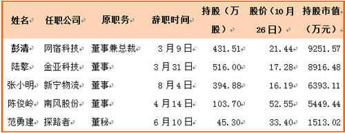緊跟其后的是金亞科技(300028)和華測檢測(300012),分別發生5起和3起高管離職。網宿科技(300017)的董事兼總裁彭清和華誼兄弟(300027)前財務總監張彥萍的離職,是職位最高的高管辭職。