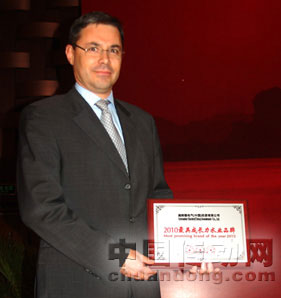 中國北京,2010年11月18日 - 全球能效管理專家施耐德電氣今日亮相2010中國水博會,并在同期舉行的第五屆中國(國際)水務高峰論壇上榮膺 “2010年最具成長力水業品牌獎”——這一業內最重要的國家級獎項。此次評選活動由中國水利部發起、中國水利學會主辦,經社會各界推薦和頂級專家團評審,充分肯定了施耐德電氣的創新解決方案及在水行業能效管理方面做出的突出貢獻。