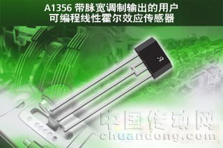 A1356 是一款帶脈寬調(diào)制 (PWM) 集電極開(kāi)路輸出的高精度用戶可編程線性霍爾效應(yīng)傳感器。PWM 輸出信號(hào)的占空比 (DC)(信號(hào)頻率:2 kHz)與施加的磁場(chǎng)成正比例。A1356 裝置能通過(guò)其內(nèi)置霍爾傳感器元件將模擬信號(hào)轉(zhuǎn)換為數(shù)字編碼 PWM 輸出信號(hào)。數(shù)字編碼 PWM 輸出的耦合抗擾性遠(yuǎn)遠(yuǎn)超出了模擬輸出信號(hào)的抗擾性,尤其是當(dāng)信號(hào)需要在系統(tǒng)內(nèi)進(jìn)行長(zhǎng)距離輸送時(shí)。
