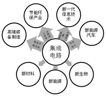 戰略性新興產業是整個國民經濟發展的基礎;集成電路產業是戰略新興產業的基石。七大戰略新興產業中四個與集成電路直接相關(見下圖);三個與集成電路產業間接相關。集成電路產業要抓住國家發展戰略新興產業的重大機遇,實現新一輪的騰飛。