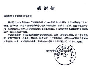 導語:天津港天保電力公司致北京南瑞公司感謝信(圖文)