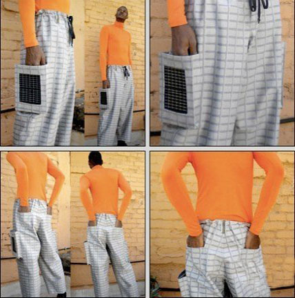 導(dǎo)語:太陽能褲子的發(fā)明者是日本發(fā)明家SilvrLining。他介紹說,這條太陽能工裝褲的外形設(shè)計(jì)時(shí)尚,為低腰休閑褲款式,腰部有黑繩能當(dāng)腰帶,穿起來既運(yùn)動(dòng)又休閑。