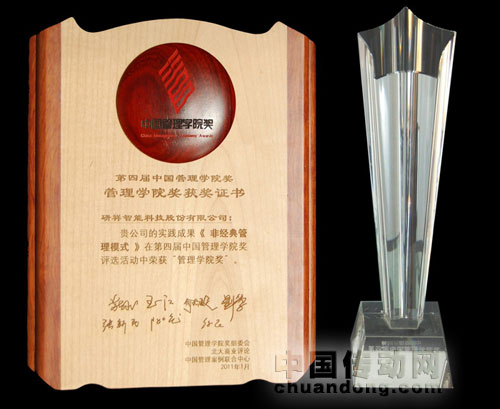 2011年1月8日,由《北大商業評論》雜志社主辦的 “中國管理學院獎” 評選落下帷幕,研祥的非經典管理模式廣受推崇,一舉摘取“第四屆中國管理學院獎”?!爸袊芾韺W院獎”旨在尋找中國最優管理實踐,打造本土最佳學習標桿,探索公司基業長青之道,總結企業創新管理思想。它是中國管理學界對中國企業管理實踐的權威審視,是對中國企業管理創新的最高嘉獎,對中國企業管理創新和變革帶來方向性影響。