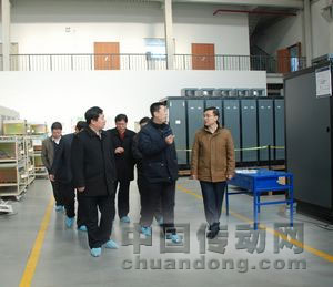 隨后,周區長一行參觀了公司先進的生產線以及低能耗無污染的生產工藝流程,周區長非常仔細地了解生產過程的每一環節,對公司文明有序的生產環境給予了充分肯定,對公司每月高達150套變頻器生產產能表示贊賞。