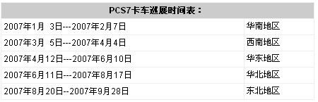 PCS 7 巡展卡車拜訪客戶[/ALIGN] 通過深入淺出的應用實例,動態(tài)的多媒體聲像演示,西門子過程自動化工程師們詳盡地介紹過程自動化,使參觀者更為深刻地理解了西門子在鋼鐵、機械、冶金、食品、飲料、包裝、汽車、石化等不同領(lǐng)域所提供的產(chǎn)品以及解決方案。參觀者普遍對過程控制系統(tǒng)SIMATIC PCS7產(chǎn)生了較為濃厚的興趣,我們的用戶也對產(chǎn)品性能表示了極大的肯定。 2007年3月,過程自動化巡展卡車在中國的西南地區(qū),同云南省的船舶制造、鋼鐵、卷煙廠等大型集團公司,以及西門子在這些地區(qū)的重要設計院合作伙伴進行了深度的技術(shù)交流;在貴州省拜訪了鋁廠、南方匯通、機電廠以及飛機制造廠、化工企業(yè)等集團廠商。 [ALIGN=CENTER]