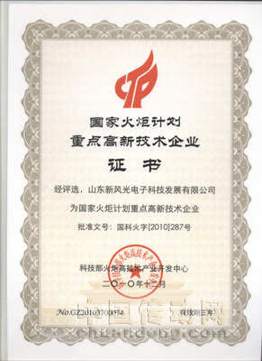 導語:科技部火炬中心網站發布了2010年國家火炬計劃重點高新技術企業名單,山東新風光電子科技發展有限公司榜上有名,成為新辦法下第一批國家火炬計劃重點高新技術企業。