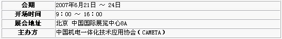 導語:我公司將于2007年6月21日~6月24日參加北京 第11屆國際現代工廠/過程自動化技術與裝備展覽會