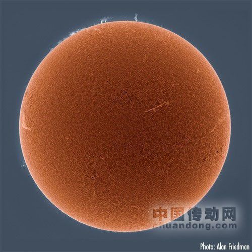 這些太陽的照片來自于天文攝影者Alan Friedman在其位于紐約 Buffalo區的后院用Point Grey火線相機拍得。望遠鏡配備了氫阿爾發窄波段濾鏡。太陽的主要組成物——氫,在深紅色光線下反射強烈,使得從日輪中延伸出來的太陽外部層面和毛狀光絲呈現出高深度的細節。不同于只是抓拍一張圖片,Friedman、拍攝了90秒的視頻,然后從中選出了幾組最細膩的圖片。在這900張捕捉到的圖片中,Friedman只留下了其中的200張。