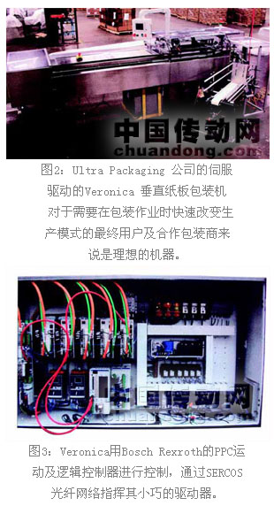 在其最新的機器設計中,Ultra Packaging公司采用了全伺服GEN III包裝自動化方案,成功地將其垂直紙板包裝機上面的機械控制運動轉(zhuǎn)換成了來自于Bosch Rexroth公司(www.boschrexroth-us.com)電子驅(qū)動及控制技術小組的伺服馬達及驅(qū)動系統(tǒng)。
