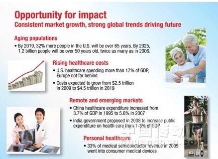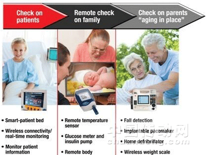 人們做了大量的工作以利用技術來改進醫療設備的質量和易用性。影響無線醫療解決方案的一個關鍵因素是要極大地縮小醫療設備的尺寸——使移動保健設備遍布診所、醫生辦公室乃至廣大患者的家中(請參見圖 2)。要實現這一點,設計人員需要徹底了解模擬和嵌入式處理、系統知識、全球支持基礎設施架構、高級工藝技術以及醫療行業的發展演進。另外,還必須始終滿足醫療市場要求的質量和可靠性高標準。