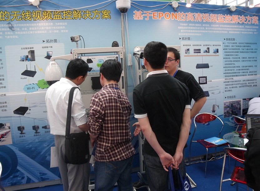 現場客戶對展示的系統方案尤感興趣,宏電工程師介紹說:由于“平安城市”項目的大量啟動,城市監控、交通監控等一系列遠程視頻監控組網需求大量出現,IP視頻監控尤其是高清視頻監控技術將逐漸成為當今主流,基于EPON無源光網絡技術的高清視頻監控傳輸系統亦將成為業內最佳解決方案,不僅僅只是體現在技術的革新,更重要的是創造了一種全新的應用模式、提供了適應未來監控系統的發展途徑。
