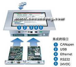 CAN通訊接口使得XV-200觸摸屏可以與各種CANopen接口的控制器交換數據。同時,集成PLC功能的觸摸屏可以支持所有的CAN接口的l/0從站和運動控制設備。