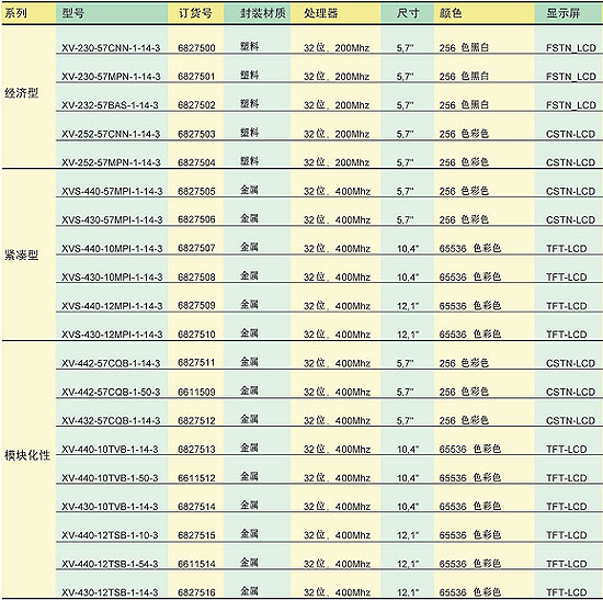 XV-400系列產品具有5.7”,10.4”和12.1”三種尺寸可供選擇,支持含CAN和Profibus-DP(MPI)在內的超過百種通訊協議.可以勝任任何任務。