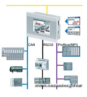 存儲在可插拔存儲卡上的內容決定觸摸屏的功能。您可以把觸摸屏作為傳統的HMl使用,它提供給您一個界面友好和經濟的操作屏。由于其開放的通訊接口和Galileo提供的各種通訊功能,觸摸屏能連接到所有通用的控制器上;您也可以把它作為HMI—PLC來使用,這樣就集合可視系統和PLC控制功能干一體,從而顯著的降低PLC成本,這種方式提供了一個非常靈活的自動化平臺.同時兼容IT技術網絡功能。