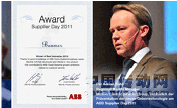 在“2011年供應(yīng)商日”活動(dòng)當(dāng)日,瑞典ABB公司過程自動(dòng)化部授予堡盟技術(shù)中心“2010年最佳創(chuàng)新獎(jiǎng)”,以表彰其在重載(HeavyDuty)編碼器和無軸承編碼器技術(shù)領(lǐng)域所作出的開拓性研究。