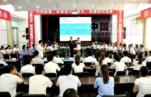 為進(jìn)一步推動(dòng)中電裝備公司“質(zhì)量提升競(jìng)賽年”活動(dòng)的開(kāi)展,提升員工的質(zhì)量技能、知識(shí),掌握中電裝備公司質(zhì)量管理相關(guān)規(guī)定,提高員工的質(zhì)量意識(shí)和技能,培養(yǎng)團(tuán)隊(duì)協(xié)作能力,促進(jìn)各單位之間的經(jīng)驗(yàn)交流。7月13日,中電裝備公司在許繼舉辦“質(zhì)量提升競(jìng)賽年”質(zhì)量知識(shí)競(jìng)賽。中電裝備公司副總經(jīng)理李光范、生產(chǎn)部總工程師都百青,許繼集團(tuán)副總裁程利民、王定國(guó)等出席競(jìng)賽預(yù)備會(huì),來(lái)自平高集團(tuán)、山東電力設(shè)備公司、許繼集團(tuán)公司等11家下屬公司代表隊(duì)參與了知識(shí)競(jìng)賽。