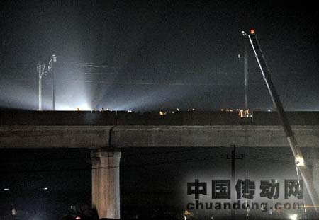 圖為事故動車車廂夜間拆解