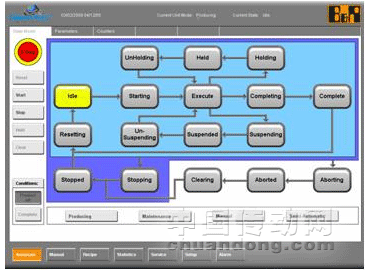使用OMAC PackML State Model保證了設備擁有獨立于制造商或控制系統供應商原來裝配的專門接口之外的通用型接入口。OMAC PackML擁有一個為不同供應商設計的通用型信息庫,是信息交流的基礎,這一特點顯示出非常多的優勢。