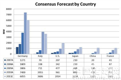 在當前市場條件下,對于德國市場在2011年安裝量的共識預測約為6GW。