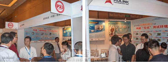 凌華此次展出的8槽3U智能型PXI 機箱PXIS-2508及PXIS-2558T是剛剛推出的新品,它們均提供1個系統槽與7個 3U PXI與CompactPCI 周邊槽,這兩款機箱最大特色是具備先進的機箱監控功能,包括機箱溫度控制、風扇轉速控制與系統電壓偵測功能等,用戶可以清楚掌控系統狀況。尤其是PXIS-2558T機型,配備8.4英寸液晶觸摸屏,特別適合單機架構或機動性需求高的量測儀器設備相關應用。智能、靜音、可靠的特點讓這兩款機箱成為會場焦點。凌華同時展出的產品還有CMOS動態測試系統,實地演示如何使用凌華高速數字I/O卡有效檢測CMOS圖像感光元件,另外凌華全系列PXI板卡和機箱也以靜態形式參加展出。