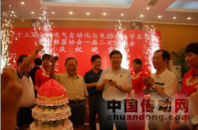 在開幕的當(dāng)天,電氣自動化行業(yè)泰斗陳伯時教授出席并做了“交流調(diào)速系統(tǒng)的控制與發(fā)展”學(xué)術(shù)報告。此時恰逢陳老80壽誕,在慶祝晚宴上,參會代表紛紛向陳老祝賀,陳老笑稱,自己“古稀離休叢中笑,勤學(xué)不息,與時俱進(jìn)”。在晚宴上,陳老親手切了蛋糕與大家分享,所有的在場同行,就舉杯為陳老賀壽!