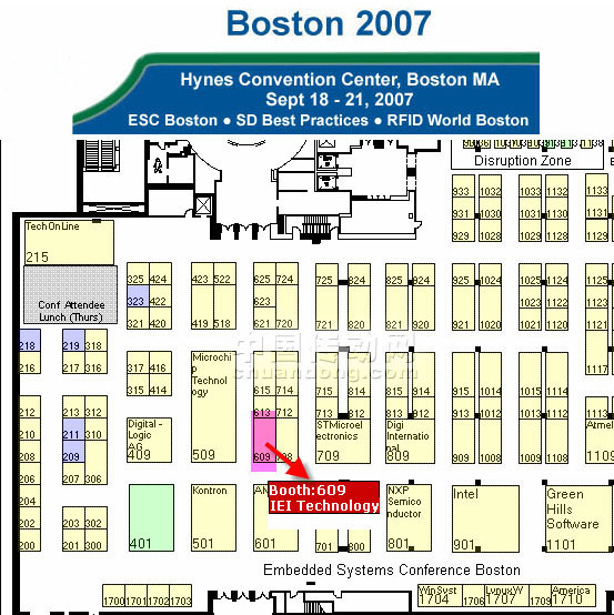 IEI科技有限公司真誠邀請您參訪IEI于2007年9月18日——21日在美國馬薩諸塞州波士頓海恩斯會議中心參展嵌入式系統研討會的展位(B609)。