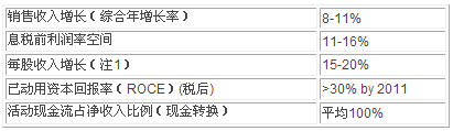 注1: 2007到2011年5年間的綜合年增長率(以2006年為基礎年份),不包括主要的并購和資產整頓以及假設常規的貨幣兌換率。