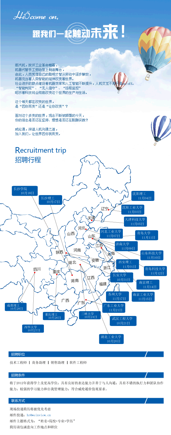 導語:敬請關注“威綸通2012年校園招聘活動”!10月17日起,全國聯動,為你而來,“觸”處精彩!
