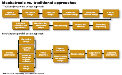 機械制造商傳統上使用順序設計的方法,會導致設計過程延長。采用機電一體化的