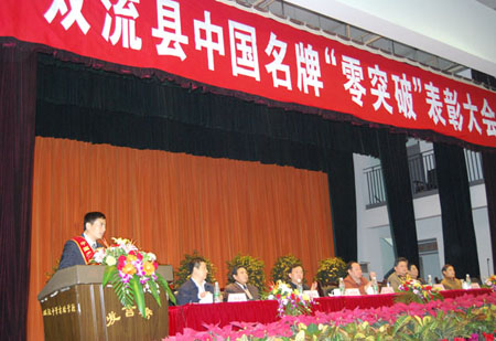 導語:雙流縣中國名牌“零突破”表彰大會隆重召開,森蘭作為雙流首批“中國名牌產品”企業受到表彰