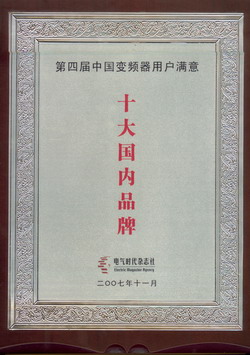 普傳科技榮獲“第四屆中國變頻器用戶滿意十大品牌”稱號
