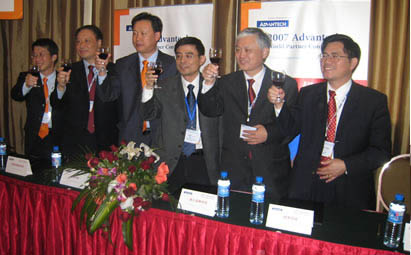 2007年10月25-27日,2007研華全球經銷商會議(World Partner Conference)于在上海美蘭湖高爾夫酒店成功舉辦。為期三天的會議上,來自全球700多位經銷商們匯聚一堂。此次會議主題為“Global Integration, Mass Collaboration”,旨在共同探討全球組織架構體系的轉變,分享研華如何邁向全球整合型企業,以及研華以大中華區為基地的市場經營策略。同期召開了大中華區媒體見面會,舉行了研華與拓峰集團、恒商公司、慎源數碼科技公司三家合作伙伴的簽約儀式。研華與拓峰集團將成立研華拓峰合資公司,專業提供產業自動化設備方案。