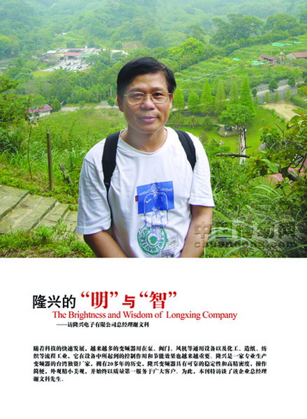 隨著科技的快速發展,越來越多的變頻器用在泵、閥門、風機等通用設備以及化工、造紙、紡織等流程工業,它在設備中所起到的控制作用和節能效果也越來越重要。隆興是一家專業生產變頻器的臺灣獨資廠家,擁有20多年的歷史,隆興變頻器具有可靠的穩定性和高精密度,操作簡便,外觀精小美觀,并始終以質量第一服務于廣大客戶。為此,本刊特訪談了該企業總經理謝文科先生。