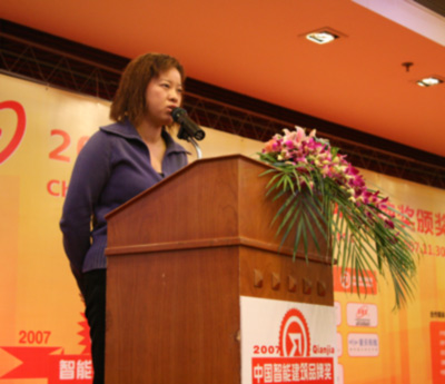 [溫燕丹]:各位來賓,各位同仁,各位專家,大家好!很榮幸施耐德電氣智能終端部能夠獲得2007年中國智能建筑十大侯選品牌第五名。品牌的創新,離不開對產品和解決方案的創新和超越。