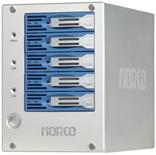 作為由磁盤陣列數(shù)碼庫的創(chuàng)新產(chǎn)品,NS-520不僅同NORCO-DS系列產(chǎn)品一樣擁有精巧的外表和強大的存儲功能,同時設(shè)計者更賦予了NS-520服務器的基本功能,其自身附帶NAS專業(yè)操作系統(tǒng),在和其它主機進行網(wǎng)絡讀取和存儲時,可以支持Microsoft Windows 98/2000/XP/XPE、Linux、Mac等操作系統(tǒng)。同時,NS-520 在實時風扇、溫度偵測、報警等功能上表現(xiàn)也非常的突出,擴展方便,背面有3個eSATA接口、4個USB2.0接口和2個百千兆網(wǎng)口。前面板每一個SATA硬盤盒都有一個綠色的LED、工作狀態(tài)指示燈和一個自動鎖柄。