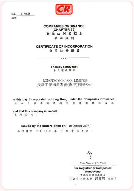 導語:珠海市長陸工業自動控制系統有限公司全資子公司——長陸工業稱量系統(香港)有限公司日前在香港成立。