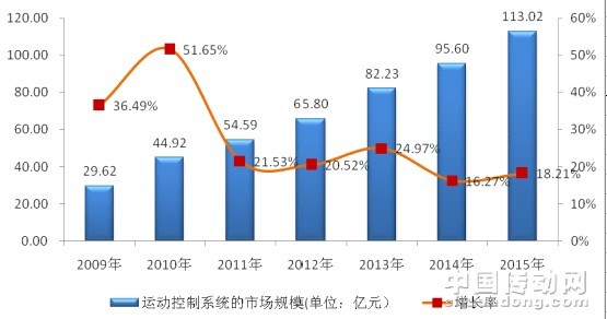 IMS Research的資料顯示,2009~2010年中國運動控制市場增長迅速,其中的運動控制器市場相比2008年增長了24%。2009~2015年運動控制產品的需求規模如下所示: