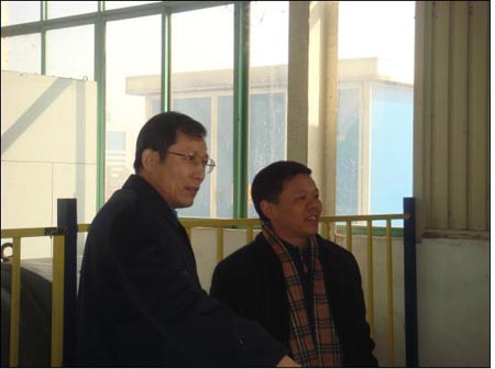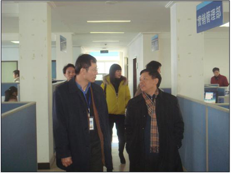 孫教授(右一)在三環公司總經理王宏英先生的接待下參觀公司[/align]