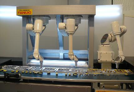 圖2:FANUC的兩臺機器抓取小箱的樣子 [/align]