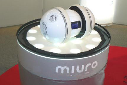 最優秀中小·風險企業獎授予個人機器人開發風險企業ZMP的“miuro”(圖3)。miuro是一款具備移動功能的音樂播放器。配備有揚聲器系統,通過改變兩個車輪的轉數,身體可隨著音樂旋轉移動。