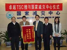 雙方相關領導卓越TSC公司銷售總監安林杰和國家減災中心總工程師、民政部救災應急指揮部辦公室李京副主任和民政部國家減災中心閆志壯副主任共同出席了贈與儀式活動。