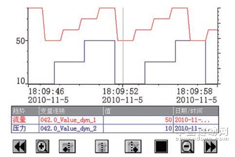 趨勢圖控件可以顯示實時數據及緩沖區中的數據: