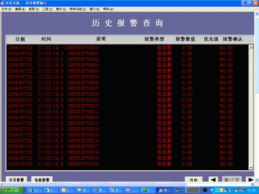 對系統模擬量的越限報警、開關跳閘報警進行記錄。