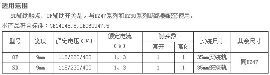 SD斷路器輔助觸點OF斷路器輔助開關(guān)