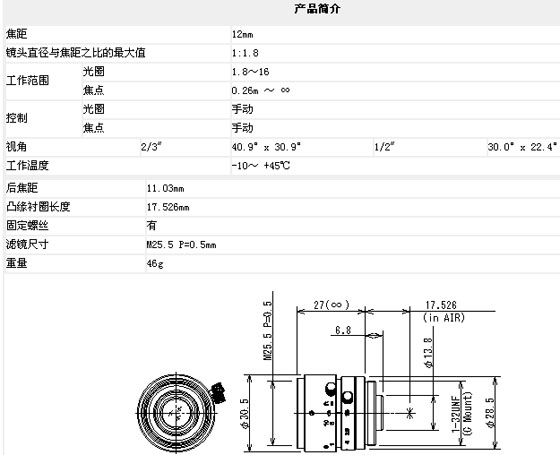 12mm百萬像素固定焦距工業(yè)鏡頭(固)