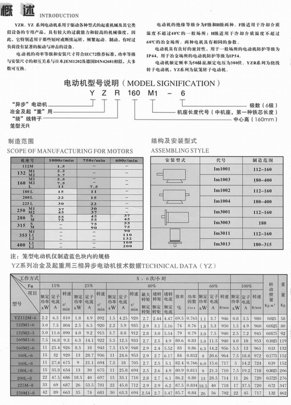 新山 YZR、YZ系列治金及起重用三相異步電動機