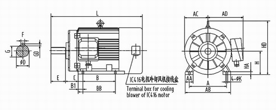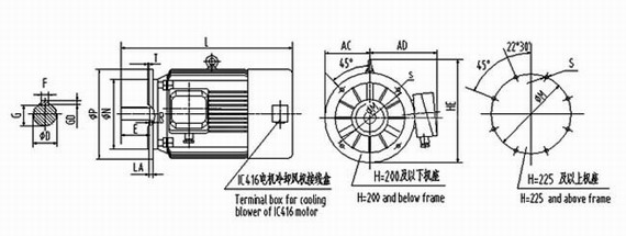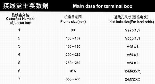 從軸伸端視之,電機接線盒位于機座右側(355及以上機座號為機座上方)。用戶如有特殊要求,請訂貨時說明,另行商議。