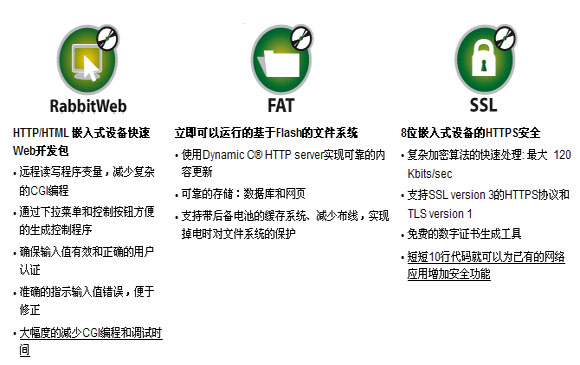 ★ 配合RabbitWeb, FAT文件系統和SSL軟件模塊特別適合網絡安全& 訪問控制系統、遠程自動化、 數據記錄和工業控制