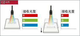 CZ-V1把3種原色的接收光量轉換為的比率(顏色成分)進行記憶,可以識別透過單一光束無法檢測的各種顏色之間的差別。